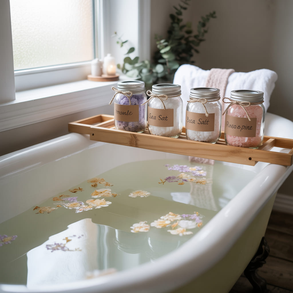 I didn’t have the energy for a full spa night, so I decided to pour some Epsom salt into a bowl, add lavender oil, and sprinkle in dried petals from an old bouquet. The scent was soft and familiar. When I slipped into the tub, it felt like exhaling for the first time all day.